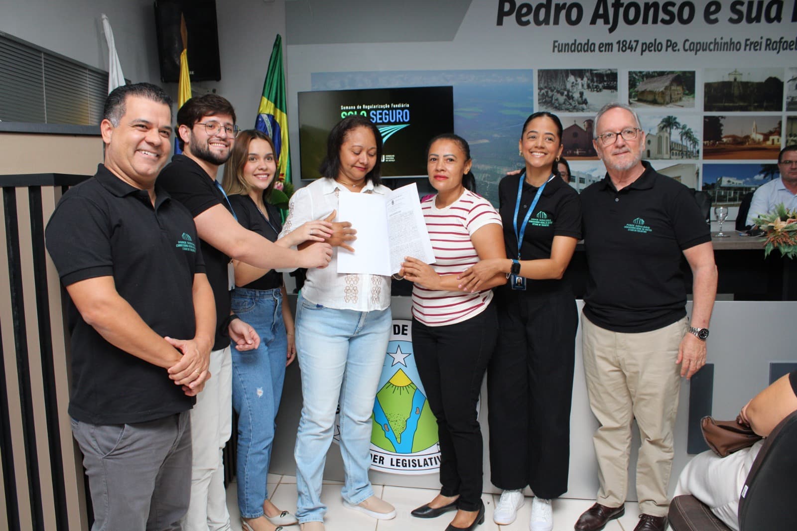 A iniciativa é fruto do Programa de Regularização Fundiária Urbana (Reurb), viabilizada por uma cooperação técnica entre a Prefeitura de Pedro Afonso, o Tribunal de Justiça do Tocantins (TJTO) — por meio da Corregedoria-Geral de Justiça (CGJUS) e do Núcleo de Prevenção e Regularização Fundiária (Nupref) —, além do Governo do Estado (Tocantins Parcerias) e do Cartório de Registro de Imóveis. A presença de autoridades do Judiciário e do Legislativo reforçou a importância da união entre os poderes para garantir que o cidadão tenha não apenas a posse, mas a propriedade de fato, permitindo o acesso a créditos e a valorização real do patrimônio familiar.