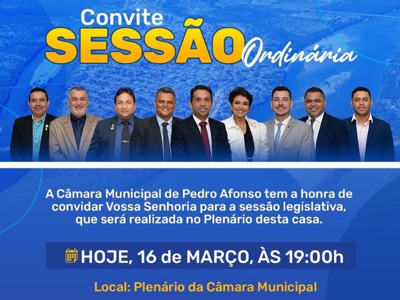 A Câmara Municipal de Pedro Afonso convida toda a comunidade, lideranças locais e representantes da sociedade civil para acompanharem a Sessão Legislativa que será realizada hoje, a partir das 19:00h, no Plenário da Casa. A presença da população é considerada fundamental para o fortalecimento da transparência pública e para que os anseios dos moradores sejam ouvidos diretamente pelos seus representantes.